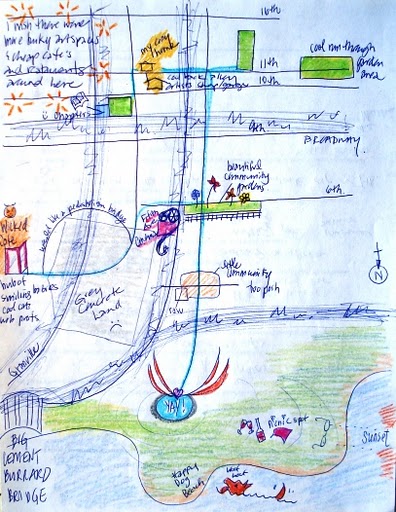 I find myself venturing into new territory with Pedestrian City, engaging a new demographic and exploring other possibilities to get involved with schools in Vancouver. As my first foray into this new world, I’ll be presenting a memory mapping workshop at the student organized Plan-It Earth Youth Forum at Prince of Whales School. The presentation will focus on active and sustainable transportation and routes to school, engaging students in a memory mapping exercise and encouraging them to present their maps to the group.
